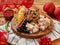 L - 0.6 kg: slănină afumată de porc 200g, urechi de porc 150 g, piept afumat de pui 150 g, cârnați sticks 100 g, măsline, ceapă verde